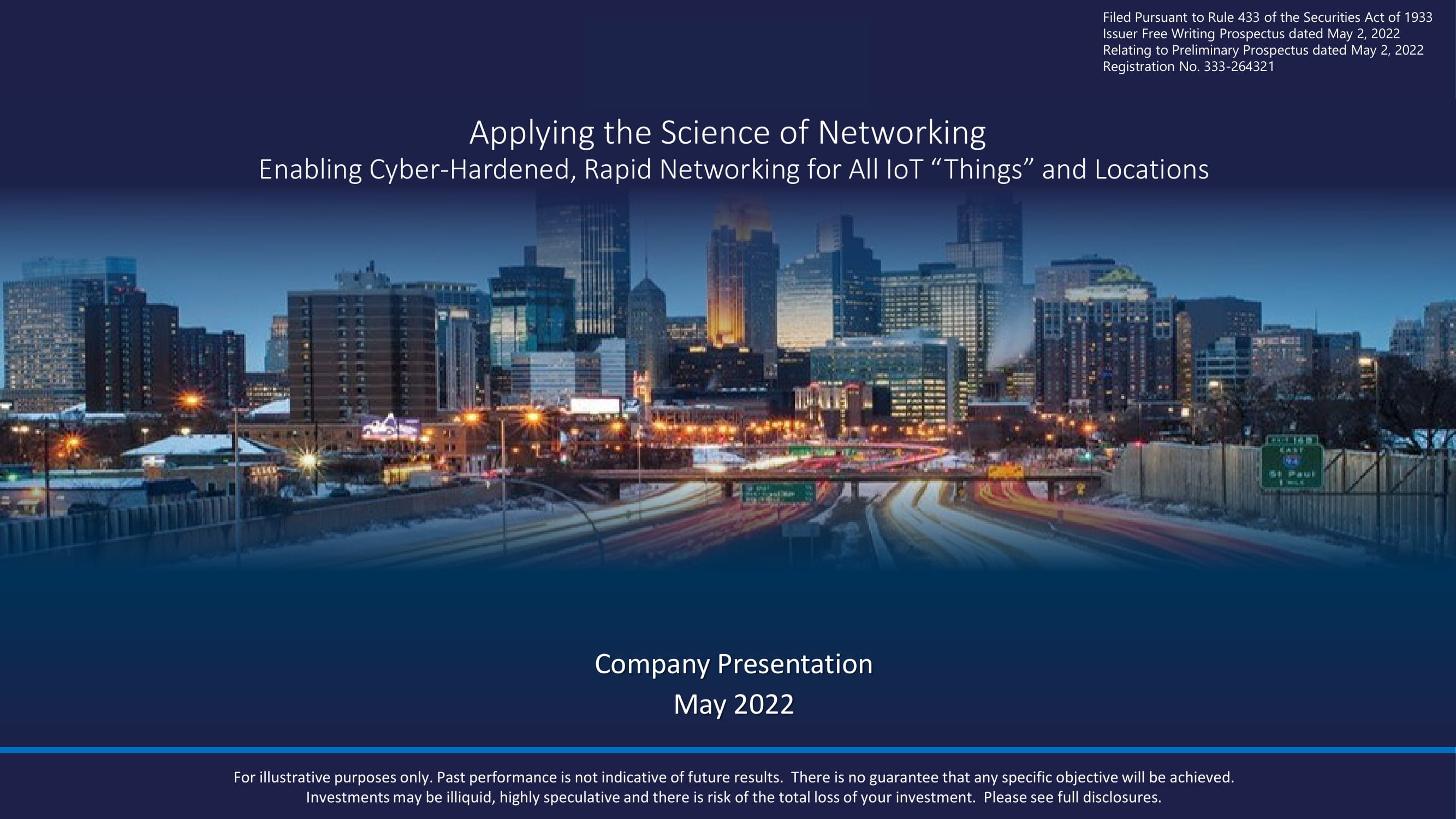 Company Presentation May 2022 Applying the Science of Networking Enabling Cyber - Hardened, Rapid Networking for All IoT “ Things ” and Locations For illustrative purposes only. Past performance is not indicative of future results. There is no guarantee that any specifi c o bjective will be achieved. Investments may be illiquid, highly speculative and there is risk of the total loss of your investment. Please see full disc los ures. Filed Pursuant to Rule 433 of the Securities Act of 1933 Issuer Free Writing Prospectus dated May 2, 2022 Relating to Preliminary Prospectus dated May 2, 2022 Registration No. 333 - 264321