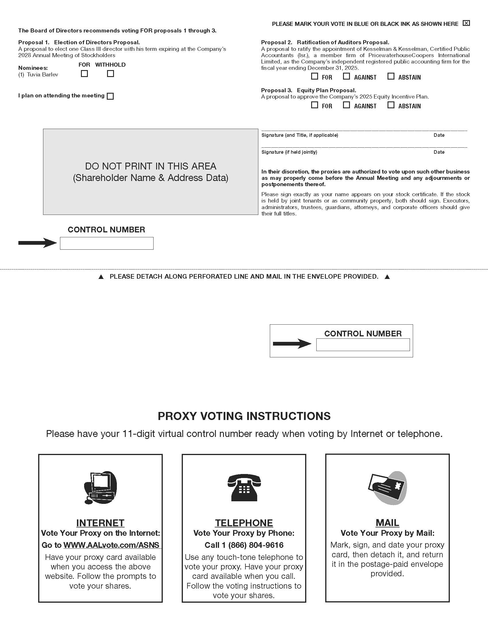 The Meeting to be held virtually at the following link: www.virtualshareholdermeeting.com/ASNS2025.